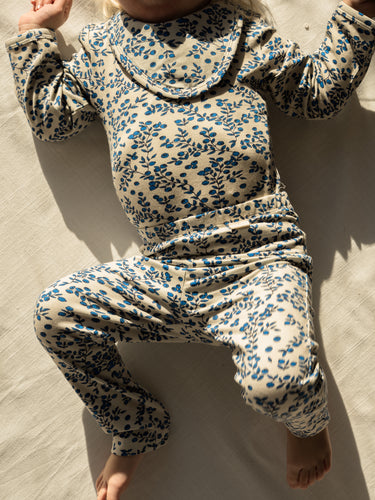 Bløde leggings med blåbærgrene, fremstillet af ultra blødt, økologisk jerseybomuld, der giver høj komfort og bevægelsesfrihed til dit barn. Leggingsene er elastiske og har en god pasform, hvilket gør dem nemme at tage på og behagelige at have på hele dagen.
